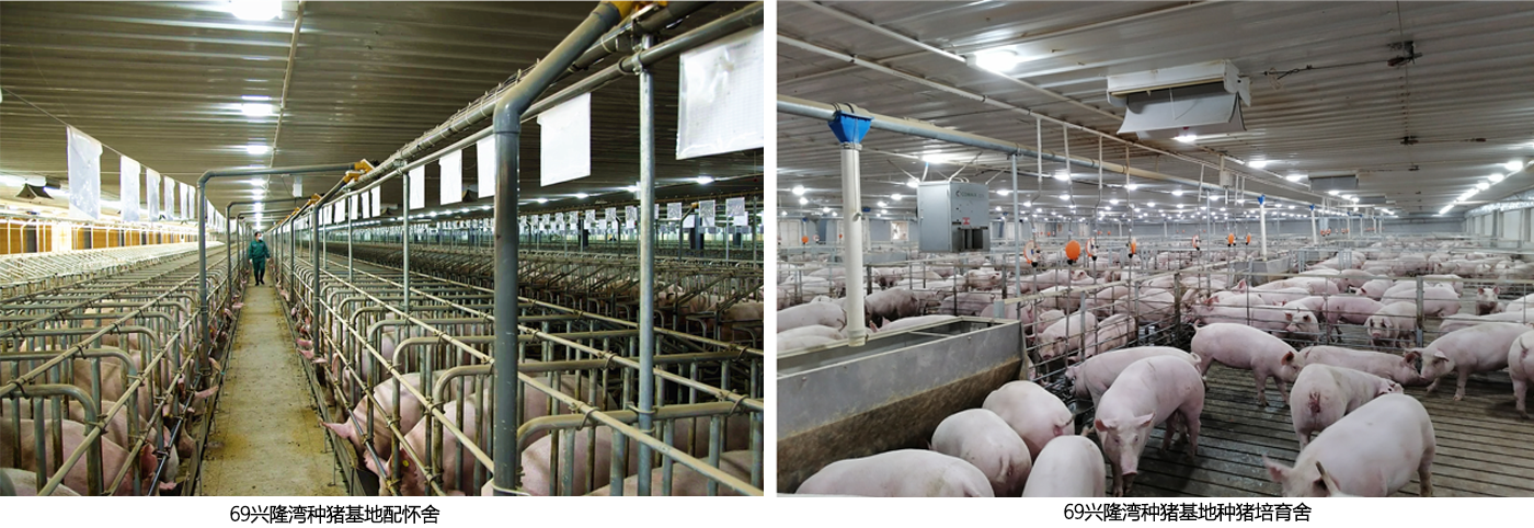 69兴隆湾种猪基地位于黔江区石会镇青山村5组。基地占地653亩,建筑面积 5.9万平方米,项目总投资2.72亿元,2020年元月投产。基地采用法国COOPER(科普利信)公司原装进口的液态饲喂系统和科诺公司环控系统。按照四级生物安全防护体系、全封闭、全自动、周批次、全进全出的现代先进理念和管理模式进行规划、设计、建设。建成标准化圈舍A、B、C三个区,共4.6万平方米,可存栏基础母猪9000头,是重庆市目前最大的单体智能化种猪基地,年可供优质二元种猪6万头、商品仔猪18.5万头。